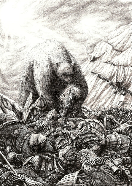 Action packed scene. Shows truly the strength of Beorn! Awesome artwork!