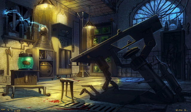Wow, you continue to impress me, all the details, your piece tells a story, a story that is hidden in the painting. My biggest question is what got out? Did one of the unsuccessful Power Puff Girls survive in the jar. Because it seems to either have killedΒ Professor Utonium or has been killed by him. Either way, somebody put up a good fight. Great work.