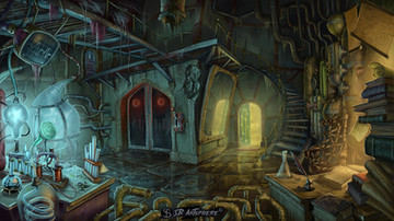 There's quite a few but to answer your question about the drawings, there's a drawing of the professor and his wife and daughter, there is a small skeleton with a bullet hole (probably his daughter) and the drawings behind the photo were probably made by his daughter so he is trying to create replacements/ clones of his daughter (baby teeth in the tray and locks of hair), but they aren't complete. There are claw marks and blood prints around the desk implying that some of the "girls" have escaped and he's had to kill them himself.Β