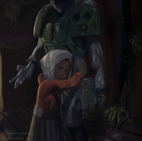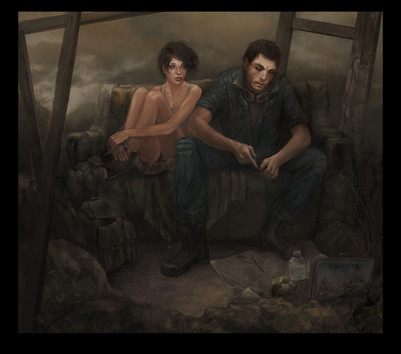 My god, this is just an absolutely fantastic piece! I hardly know even where to begin! If the series at large tried to be more cinematic and included things like this scattered amid the game instead of just having them as mob enemies, the immersion and just heartache of seeing feral ghouls would just be astronomical! The sorrow on the ghoul's face is subtle, the kind I've seen on a grandparent's face when they look back at old family photos and know they know something about the photo but they can't quite remember, or they recall that the person with them is no longer living. It's a feeling of tragedy as an onlooker that just lets one stupefied!! The memory is there, but only as an echo. The smile of the child breaks up the mood of the picture's serious and mourning tone as the poor thing is lost in dreamland, unaware of the danger above her or her new role as catalyst for the hardwired response of maternity within this poor withered creature. That in contrast once more to the actual mother, who is at this moment being threatened with the loss of her child should this mentally unsound creature's reflection and brief recollection give way to irrational rage or impulse. These are the moments we imagine when we go into the wasteland, this is the feeling of Fallout as a whole; not just 3 or 4, this sums up so many feelings into a piece that is so beautiful yet so wholly tragic and heartbreaking that it leaves my mouth agape and my mind wanting more! I want to see how it plays out, I want to see more, I find that I'd want a story or video to go with it. There's so little here but yet so much story in the picture! I find myself having nothing but sympathy for the ghoul woman, for the child, for the mother! It evokes compassion without a single word! Part of me wants to imagine that this little moment of beauty would go on, that perhaps the ghoul would say something even if a simple single broken word to the mother or to the daughter in a whisper or leave, or that the mother would somehow know she's dangerous now and retreat back into the night, or when the two awoke there'd be some old supplies sat next to them from an unlikely guardian angel. You are a fantastic artist and I considered myself blessed to have stumbled across this image! A dirge for her in that humanity long lost to nuclear hellfire, choices made outside her control.