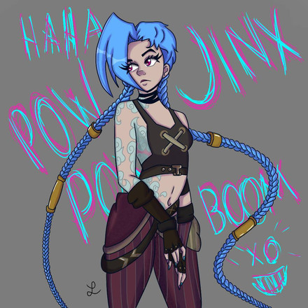 -ENGLISH: Arcane was a series that I completely loved, the story of each character captivated me so much that I didn't even know who were the good guys or who were the bad guys, but among all of them there was one that I loved, and that's Jinx. Her past left her disturbed and for this reason she went crazy, in addition to being sadistic and having an arsenal of destructive weapons to sow terror full of fun (for her)-SPANISH: Arcane fue una serie que me encantó por completo, la historia de cada personaje me cautivó tanto que ni siquiera sabía quiénes eran los buenos o quiénes los malos, pero entre todos había uno que me encantaba, y esa es Jinx. Su pasado la dejo trastornada y por ello enloqueció, además de ser sádica y tener un arsenal de armas destructivas para sembrar terror lleno de diversión (para ella)