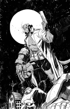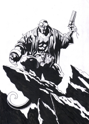 Just finished this one up during this morning's commute. This is the inked version of a Hellboy sketch I submitted earlier. HELLBOY is always a ton of fun to draw.(That little figure in the upper left corner was added by my daughter last night when I stepped away for a few minutes. Didn't feel like inking over it so I left it.) 🤣