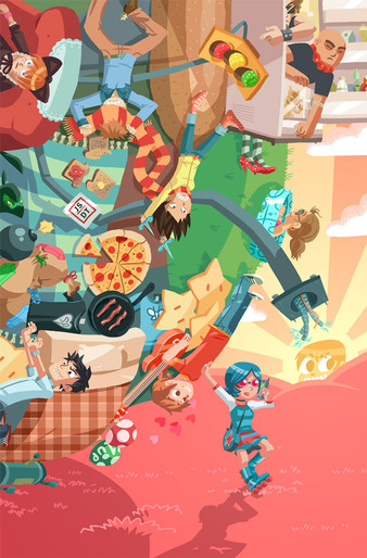 Ico hauling up a worthless princess, Snake unplugging the controller, and Samus chilling above them all eating pizza. This is a truly good world.