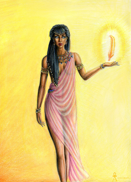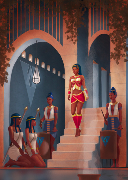 Isis is mainly seen as mother and protector of the weak, but her powerful magical abilities also play an important role in the mythology. I wanted to depict her as mysterious and wise, powerful but benevolent.