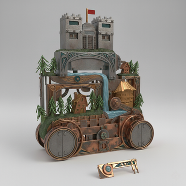 - Steam machine with turnable wheel and piston in the cellar (controlled by cog/ball)