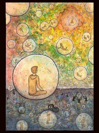 brief description: This artwork is about losing track of reality because life has turned into a daily routine.