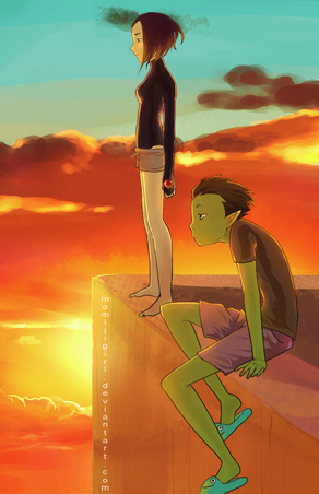 If this looks familiar, that's cause it's based off of the famous toenail clipping scene from both the comic and the show, The Maxx. You know, for a famous scene, it was really hard to come by, so a big thanks to TheLotusClown for his wallpaper for reference.Beast Boy, Raven Β© DC Comics