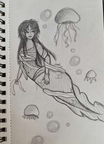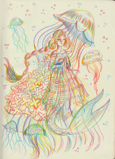 #mermaid #sea #coloredpencil #coloured #traditionalart #sketch #pencildrawing #fairytale #jellyfish #princess #characterdesign #originalcharacter