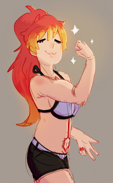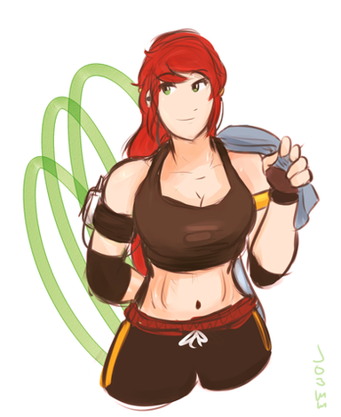 I think seeing Pyrrha in workout cloths will be a sort of awaking experience for people who don't find muscular girls hot. Korra from Legend Of Korra was mine.