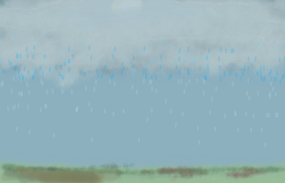 Brown Image-- I see it as "dreamy" because of several details. The rhythmic trees in the background are faded away with gentle, minimized contrast, lulling the viewer. The artist added some horizontal rhythm with washes of fog along the bottom. The smoke curling up from the house exhibits a lazy sway. Altogether, the effect is of an early morning, where the bustle of the day has not yet left the confines of the house.