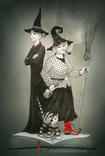 Lovely! Β I like how the witch has become tech savvy and has a laptop!