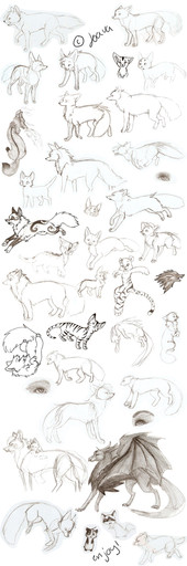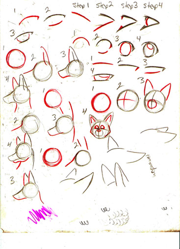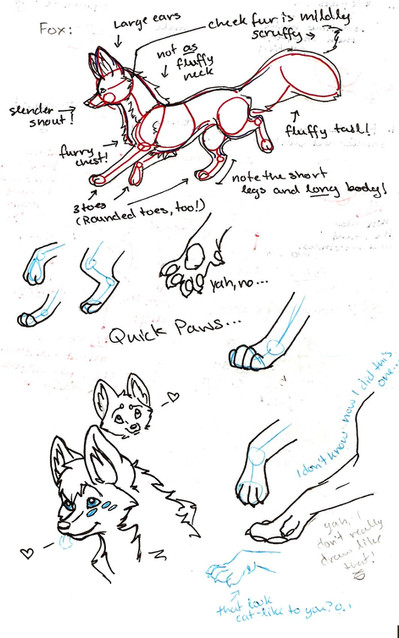 XD I'm sorry, to me this just looks soo....bad! XD I've improved like mad in months of constant drawing...XD I'll tell you a trick though: I found tons of pictures all around of actual wolves and foxes and stuff, then, I traced the outlines on paper straight from my computer screen, and then, I re-outlined them in blue pen. After that, I used a red pen to add in the circles as reference points and whatnot. :3 I'll probably end up making a better tutorial like this! XD