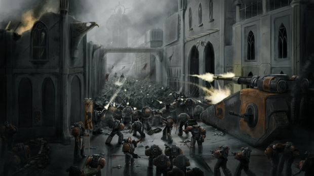 Those chaos space marines are either real stupid or expendable to be attacking a dug-in imperial fist successor chapter.