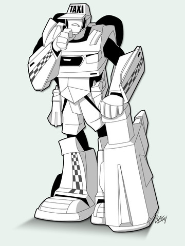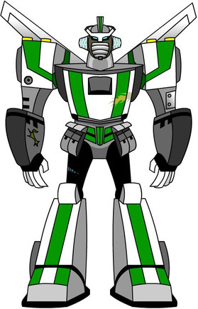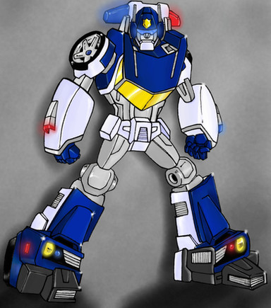 Transformers is the property of Hasbro.Hot Shot as a Cadillac CTS with Lincoln Police colors and markings. For his head/helmet I basically went with Animated-inspired blue w/yellow trim, adding a tinge of red to the face and gave him the goggles off his TF PRIME figure. Note that he's only about a head taller than his Minicon partner Jolt (as the CTS has a wheelbase not much larger than the Sonic) - owing to my effort to avoid significant mass-shifting in the designs, I figure there'd probably be some separation as well as a fair bit of 'backpacking' on Jolt's part to accommodate Powerlinking.