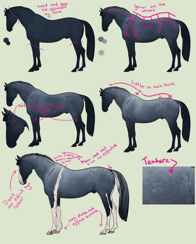 Get a good palomino-ee color that won't brighten out too dramatically when you soft light. Put the markings on the same layer. Turn the layer to soft light, then duplicate it to get the amount of color you need. Tinker around with the opacity to get the color juuuuust right then ta-da! your done