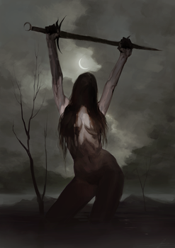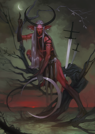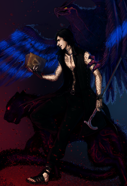 I really love the pose and overall composition of this!! The dark colors mixed with the hints of purple dark magic and the blue-green of the wings! Really eye catching and stunning!! This is one of my new favorites from you!!