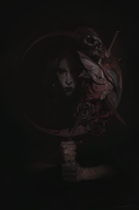 I love the dark palette. The hints of vibrant colors really brings this beautiful piece together.