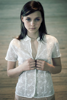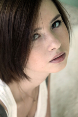 this is very appealing...innocently seductive eyes, the lovely hair and the subtle thinness of the shirt...very well done.