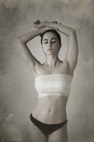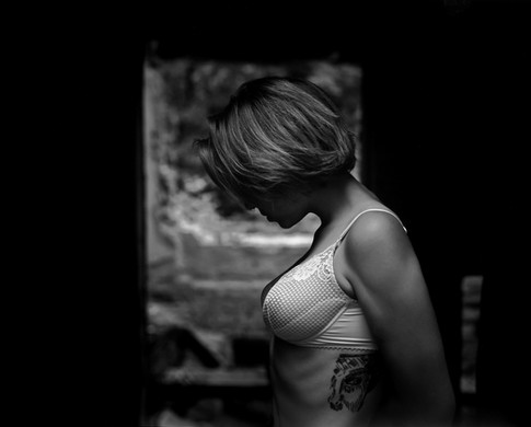 Like the contrast of the white robe and black lingerie and the separation of the robe to the black backdrop! Β Lets not forget the lighting from her side and facial expression