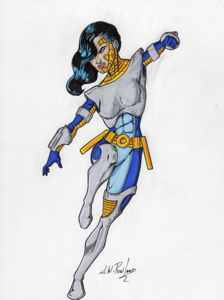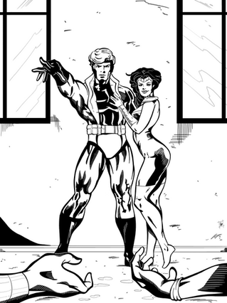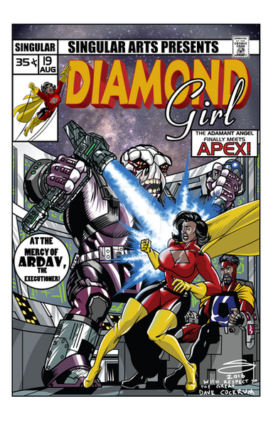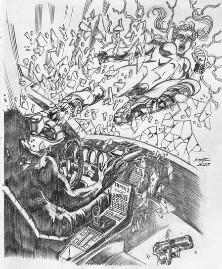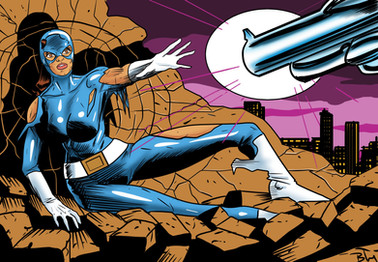 The idea was, the heroine has been beaten, but is undefeated, with the bad guy standing over her, in a warehouse setting. The villain is in silhouette, so that necessitates a strong light source, which led me to doing the warehouse office, with light shining out the little window. I'm nowhere near good enough to do detailed lighting, that's a skill I just don't have, but I think this worked out pretty well, in any case. My original plan was to do the lettering by hand, on the original art, but my limited skills in hand lettering led to me only doing the #1.Related content