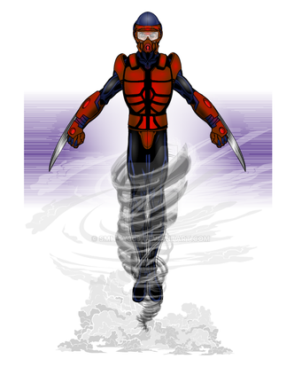 Peter Gerard Holmes is the cousin of Alan Lowery, Skeeter. One afternoon, when the lab was left unattended, Gerry broke in and stole the prototype rig that became the Lightnin' Bug suit. The flight rig generates a potentially-dangerous amount of excess electricity. Gerry, a competent technician with a penchant for taking short-cuts, was able to rig a lightning blaster, to deliver taser-like bursts of electricity.Related content