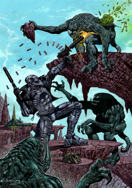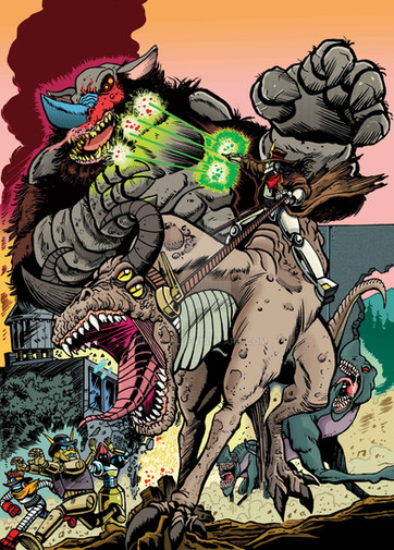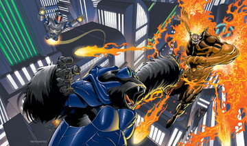 So, I did this Halloween piece for the Nova 619 group and it gave me some ideas. Not long ago, I went back and re-read the Adam Warlock stories. I try, desperately, not to cringe too much at the bad science (as opposed to Bad Science, or Mad Science) in comics, but when the High Evolutionary gets a bee in his bonnet to create another Earth, from a single lump of earth-rock, my disbelief-suspension severely sagged. When he does all this in a span of mere days...well, it went through utter collapse. I know, I know, it's a comic and he had magical super-alien assistance (at least one soul gem, which he gave to Adam Warlock), and it's a comic...but it bugged me, even on my first reading, when I was in my teens it bugged me. Then, his "evolved" New-Man, the Man-Beast (haven't we learned not to give kids unfortunate names, yet? Don't name your kid Adolph, or Seymour, or Agatha, or frickin' Man-Beast...give the kid a chance!), who is an "evolved" red wolf (Wolf in the Fold, anyone? Way to perpetuate negative stereotypes about wolves, Roy!) tinkers with H.E.'s creation while he's sleeping off that tough week of world-building and instills in the nascent human race, a killer instinct. Thence, wackiness ensues.