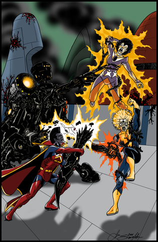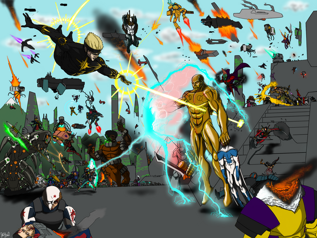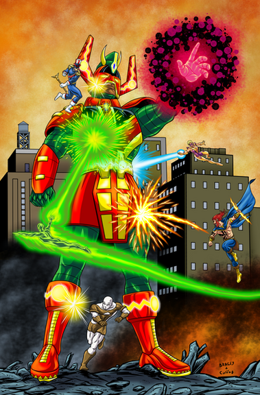 So, I wanted to do something on the scale of a wraparound cover. One of these days, I'll do one of these that's a classic face-off between groups of heroes and villains.Related content
