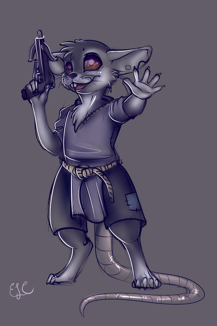 Just the wererat thief ninja man from Shining Force II.Was trying out the work comp. The tablet I'm setup with there has a larger active area than I'm used to, so strokes don't quite feel right as of yet.
