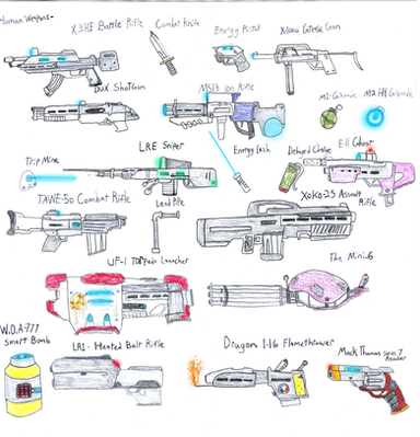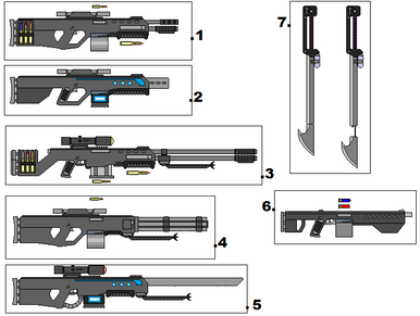 Here are the weapons for the good guys. The UTMC. I dunno if there is already a weapon called the Jackhammer in any game or movie, but I pictured this shotgun sounding like a jackhammer.I will have the weapons for the "bad" buys soon enough.