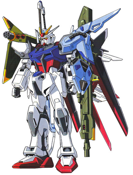 That's Sword Impulse Gundam from Gundam SEED Destiny, with a gun and shield. ^^