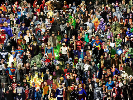 I have been renovating my basement, making it into my art studio/family room. I am geeking it out with my love of movies and comics.I am repurposing older furniture, one of them being a table and chair set. So I created this collage to go on the 5'x3' table top and then cover it with a clear epoxy.