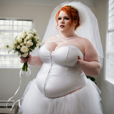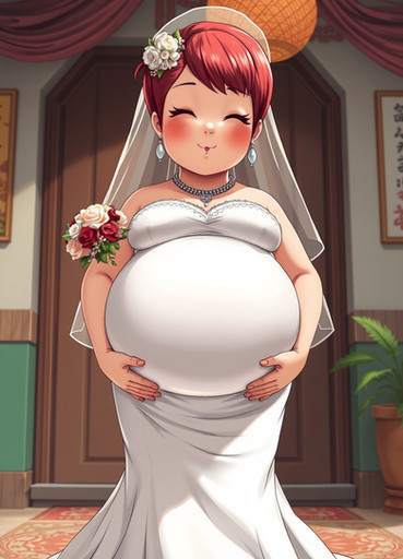 #dress #ai #dreamup #wedding #chubby #beautiful #bridaldress #bride #cute #plump #veil #red_hair #short_hair #wedding_dress #bellyfetish #big_belly #ai_art #sub_gallery_cover_pic