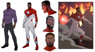 Mightyman is from a race and planet that colonized Egypt after their planet was destroyed. Coming to earth by slave trade Allen would be taken in my a scientist name Donald Davis. Allen went on to earn a degree in education and became a history teacher at Trinity Middle School. But unbeknownst to his students and the rest of the world, Allen Jamal Davis is Mightyman. Mightyman makes his appearance in the last chapter of Keisha Carter is Mega Woman."