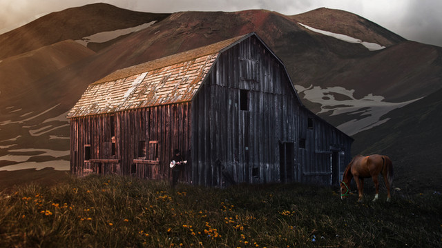 That is amazing hun. The lighting is perfectly timed. Love how small the model seems next to the barn and the beautiful contrast in colors and shadows. It truely fits the title for it.