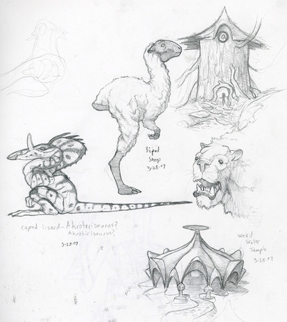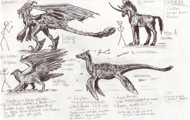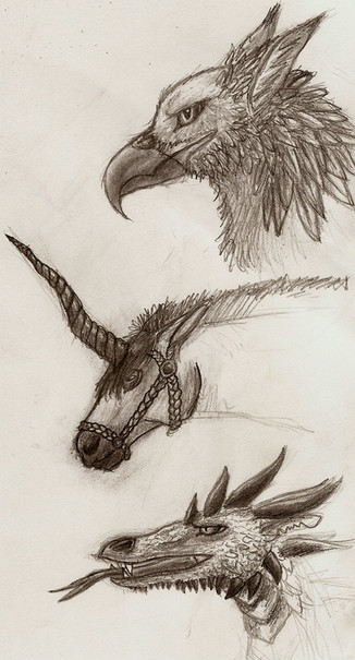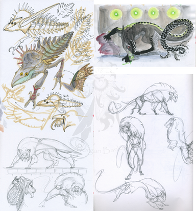 Just some sketches of various fantasy creatures I've drawn this month. The cyborg and the dragon were made during lunchbreaks at university. Helmet Birdie and Monster Doggie were done today.Related content