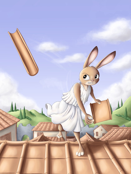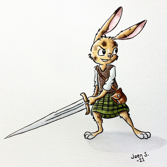 This is the first traditionally painted rabbit I've done, and also the only one without a history lesson. That's because I've already drawn a rodelero before and you can find the history lesson about these Spanish swordsmen there: