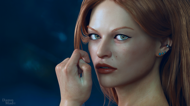 great looking lady,the pose and expression are well done. I have to say only thing is the red of her left eye is a bit much.