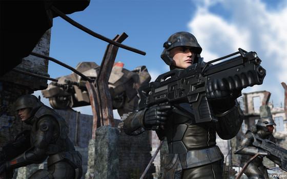 Getting some Starship Troopers vibes going on here. Just need some big ol' fire ants in the BG blowing stuff up heh.