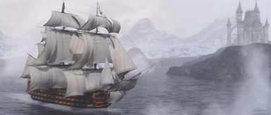 Another experiment with the Licorne 18th century corvette in Carrara 8.5 Pro.Click here to view the stereoscopic 3D version at 3dLive