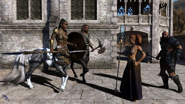 I've often wondered about the etiquette of people riding centaurs. Would it be wrong for a man to ride a lady centaur? This guy obviously wants her off his back, which leads to is it proper to ride one at all? Or could I be reading this whole pic the wrong way? Is she ticked at the lil booger riding on her shoulder while she rides the mantaur? Either way, is it even comfortable riding a centaur? Does anybody know how that works or what's proper?