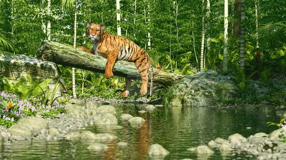 A very quick experiment with "LAMH 2 Iray Catalyzer", "Real Fur for DAZ Big Cat 2" and "Jungle Construction Kit 02" in DAZ Studio and Iray. I wanted to see how fast I could render a scene using "LAMH 2 Iray Catalyzer" by keeping the memory low enough to just use the GPU rendering. This rendered in 2 min. No post workRelated content