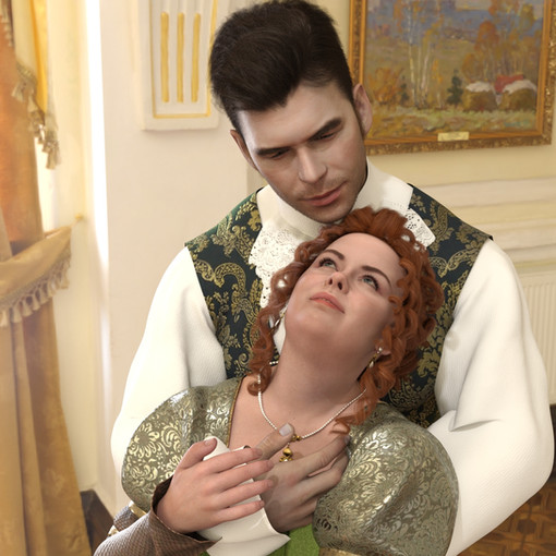 Playing with Sangriart's "Margie for G3F" and "Lionel for G8M" in DAZ Studio and Iray. No post work- Margie for G3F