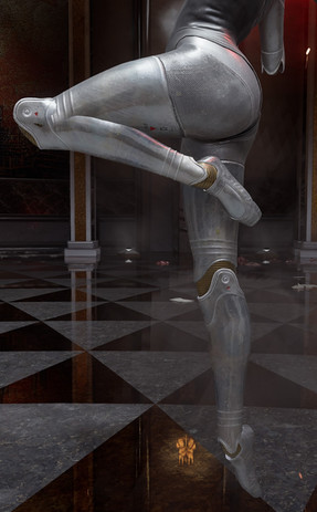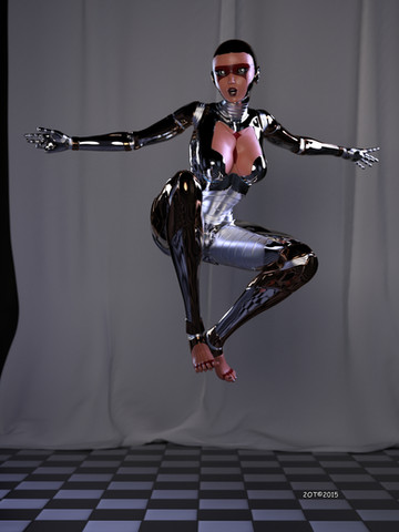 Fantastic scene, Joe! Her pose is really beautiful and unique. I love the shiny metal and reflections!