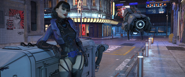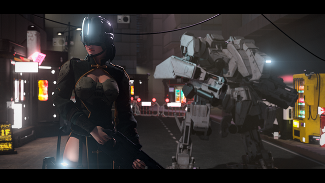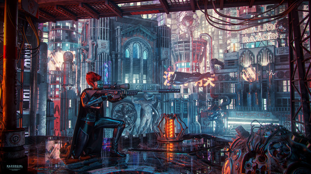 Playing some more with Stonemason's "Urban Future 5" and "System 46 for Genesis 3 Female(s)" in DAZ Studio and Iray. No post work.- Kenjutsu Sword