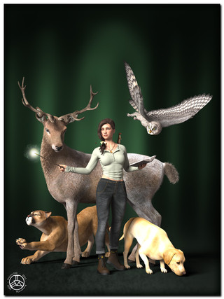 Thank you, It was a lot of fun to try and create the characters from the books. I didn't have a good model for Mouse, so I cheated and just use the "Benji" puppy morph scaled up and increased the length of his hair. I wish I could find a real Fu Dog model