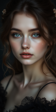 Macabre Beauty, a portrait of beauty in the macabre that combines elements of darkness and beauty, a-beautiful-and-cute-skinny-21yo-female, ultra-detailed-chiseled-face, dark-detailed-eyes, lighting and composition create a hauntingly beautiful image, (best-quality , masterpiece , photo-realistic)1.2