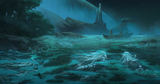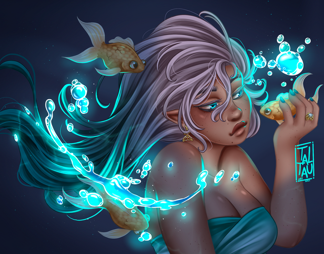 Beautiful painting, as always! There's such an ethereal, fantastical feel to it, and I love the sense of movement from the flowing fins, clothes, and hair. I do hope you're doing OK, and that the sleeplessness doesn't affect you for much longer. Please take care of yourself if possible!! Feel better soon! ❤