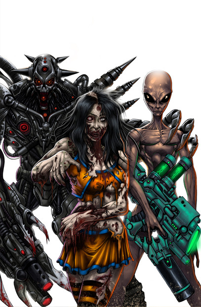 Is this a comic based on zombies, aliens and robots?! Cause I am in the process of making one....