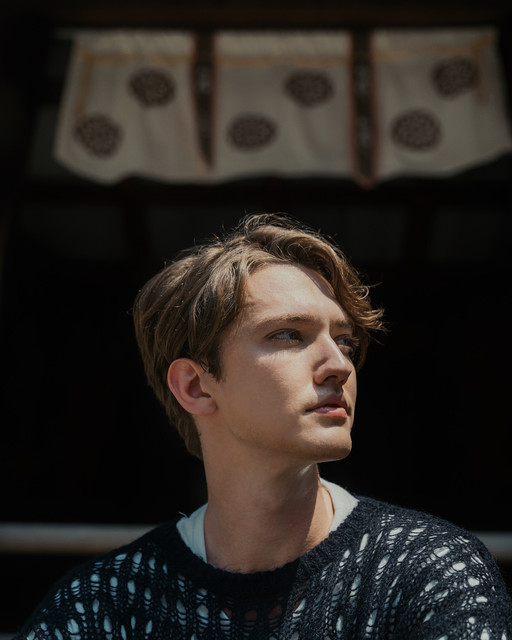 his skin tones and hair color against the background color and the color of his clothes is just beautiful....gorgeous shot!