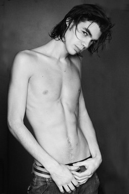 i like how his hair is different in this one, almost like he just got out of the shower and put on some pants (not meaning that in a sexual way!!) really, quite a lovely shot... i like his expression